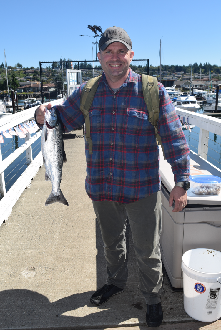 The NKPSA Armed Forces Appreciation Derby was held Saturday August 28 with a final tally of 43 fishing participants, 20+ military family members, 23 captains, and 20 shore volunteers. The participants hailed from all over the country, New Hampshire to Washington and Florida to California. The 43 participants weighed in 34 fish with the winning silver fish weighing in at 7.2 lbs. The total fish keepers reported at the scales was 53. The goal of this derby is to catch as many fish as possible and our captains exceeded expectations. While the captains targeted silver and pink salmon, the boats were kept busy all day releasing kings, wild silvers and bottom fish mostly at skunk bay, point no point and possession.